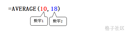 =Average(10,18) 结果为14 即(10+18)/2=14
