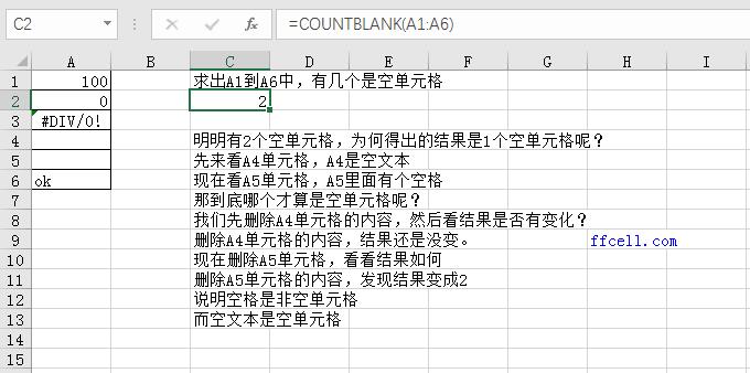 =COUNTBLANK(A1:A6) 结果为1,请看下面动画