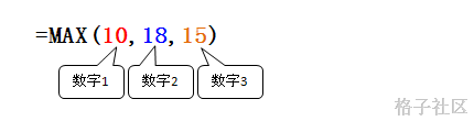 =Max(10,18,15) 结果为18,即这组数字中最大的是18