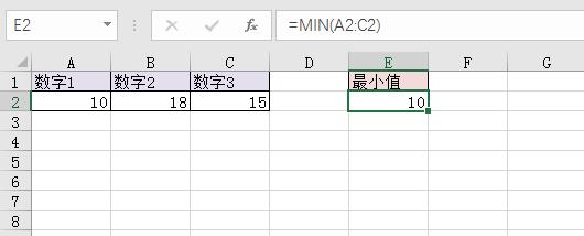 =Min(10,18,15) 结果为10,即这组数字中最小的是10