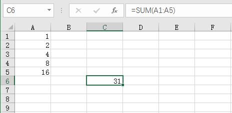 =Sum(A1:A5) 结果为A1单元格到A5单元格内所有的数字相加后的总和