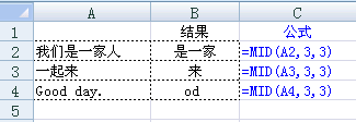 =Mid("中国人民",2,2) 结果为国人=Mid(A1,2,2) 结果为国人, 其中A1单元格的内容为中国人民