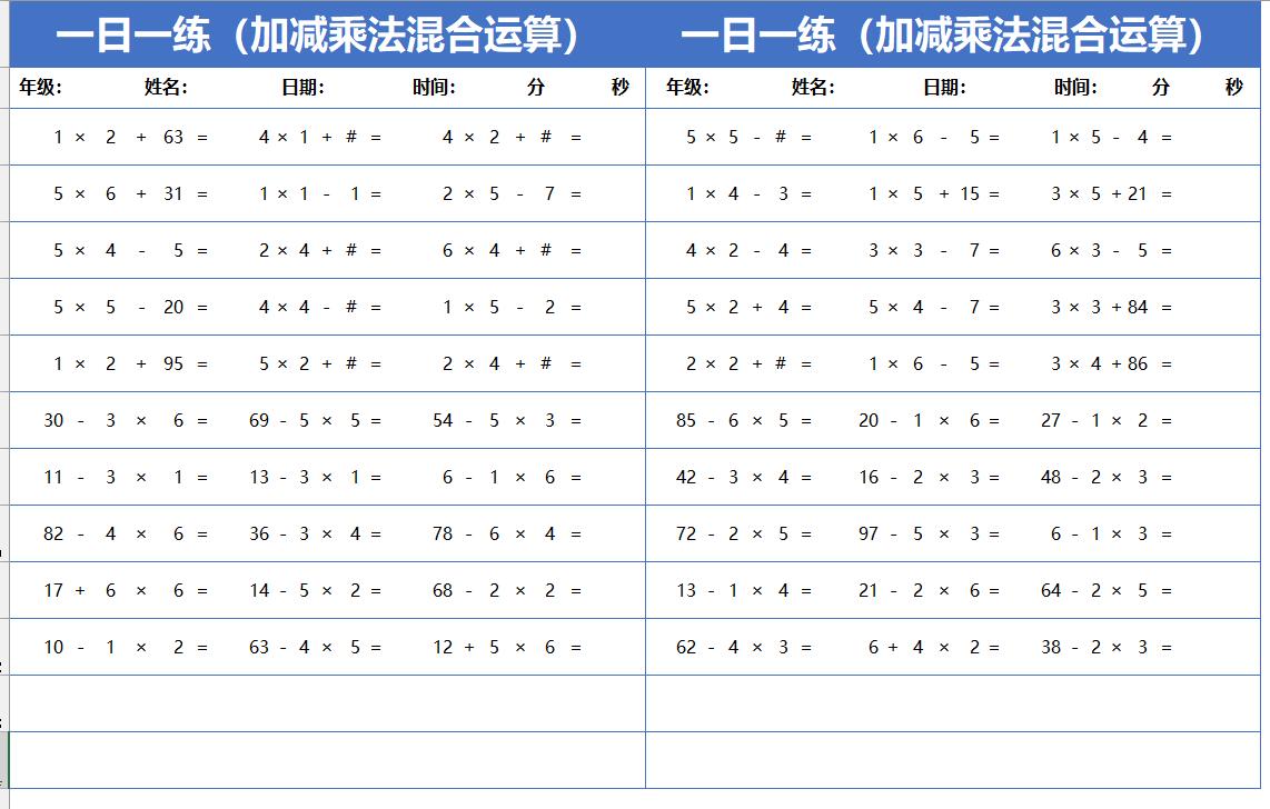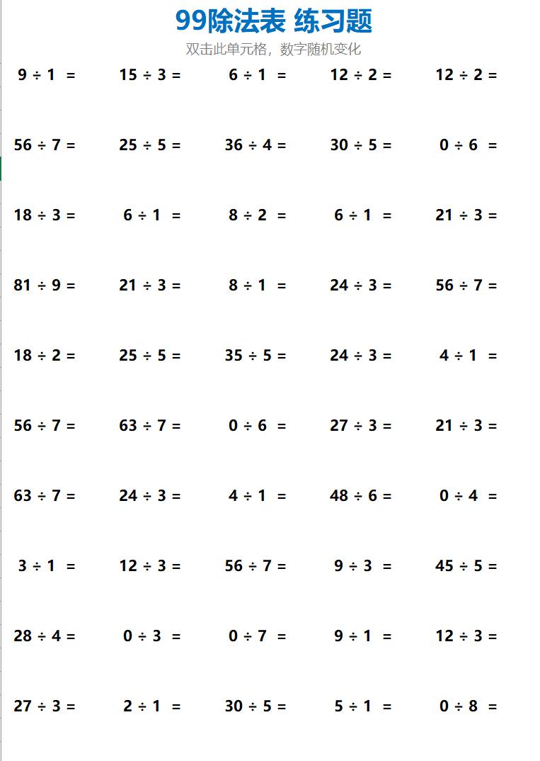 小学生口算题计算题训练题自动出题excel表格