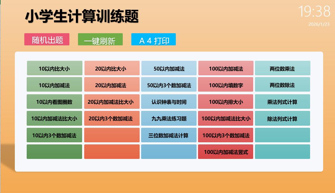 关键词: 学生 口算 出题 加减乘除