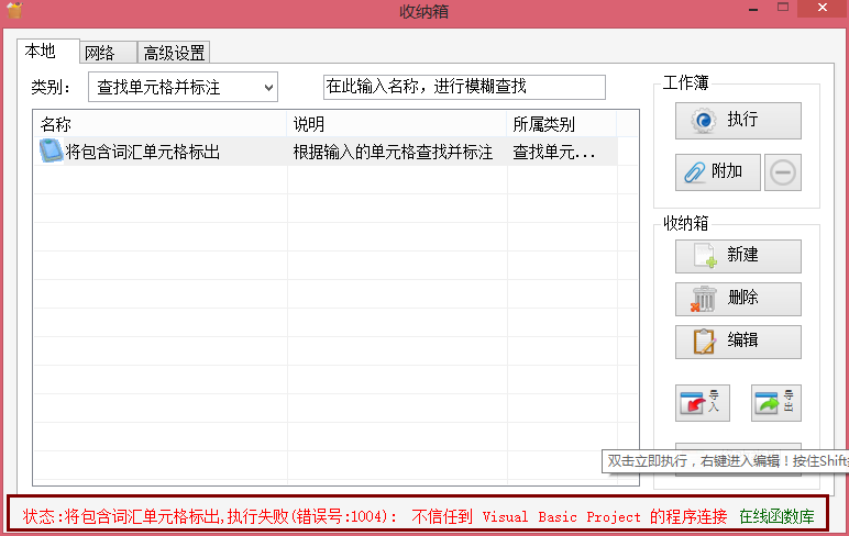 在使用收纳管理箱的时候提示,"不信任的VBP外部程序链接“怎么处理啊,求帮助