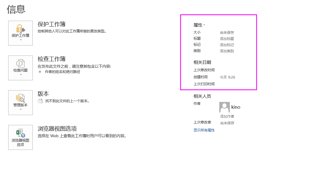 excel的文档属性(如果是2013版,在文件-信息-属性那里),里面主要放些标题、作者、修改时间之类的属性。
