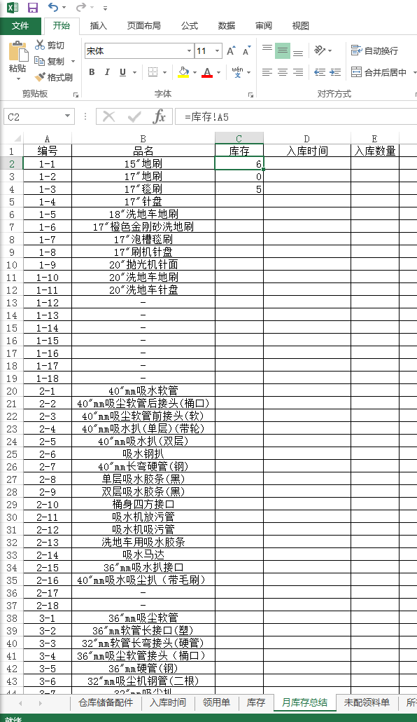 1.整理一下库存表,让数据区域连续。然后使用vlookup match这类公式