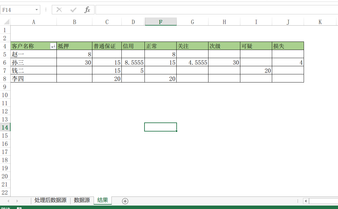 第二,根据C项的对称方法,如果是抵押,则将数值添加到D项;普通保证,则为E项;信用为F项