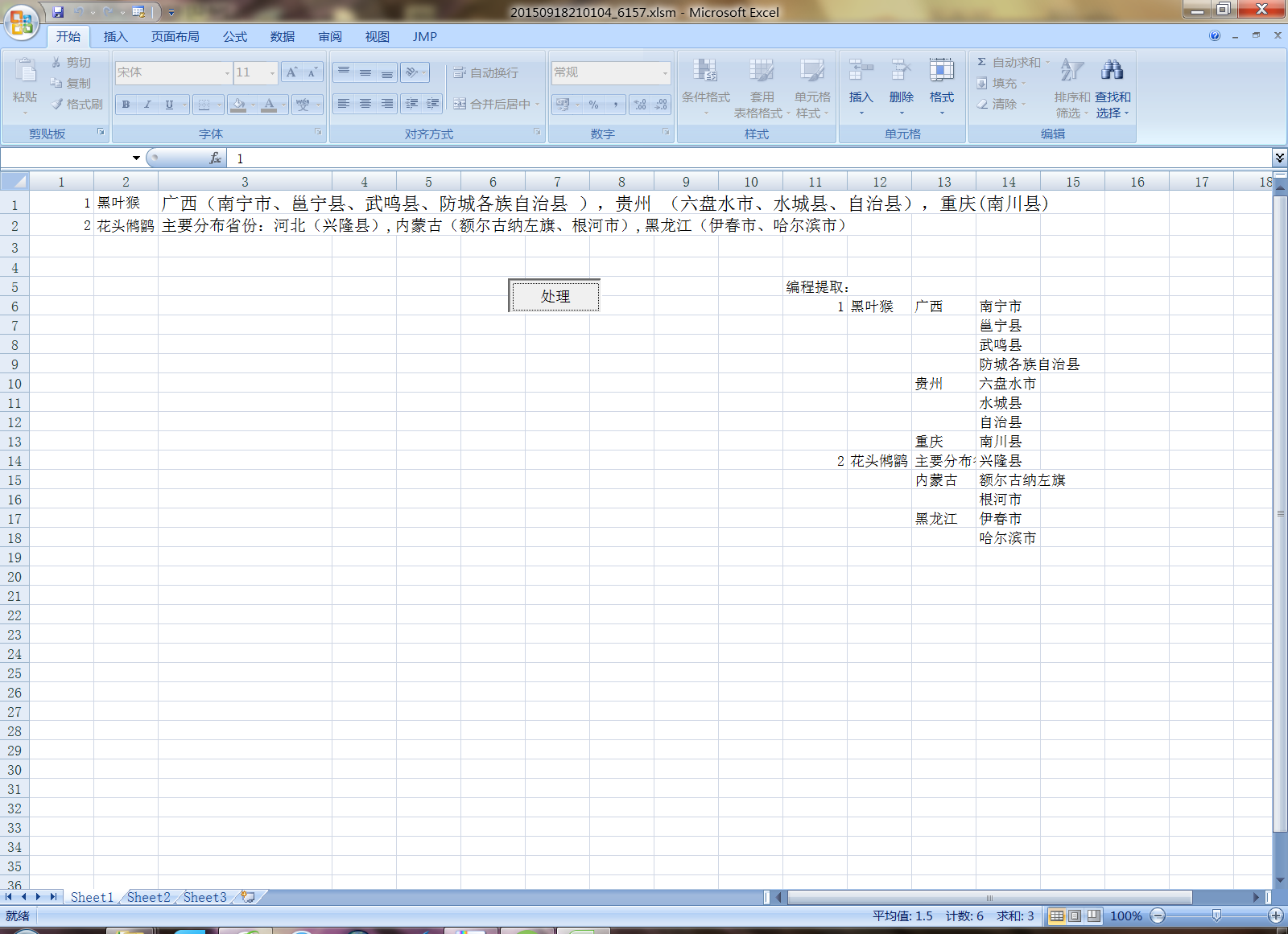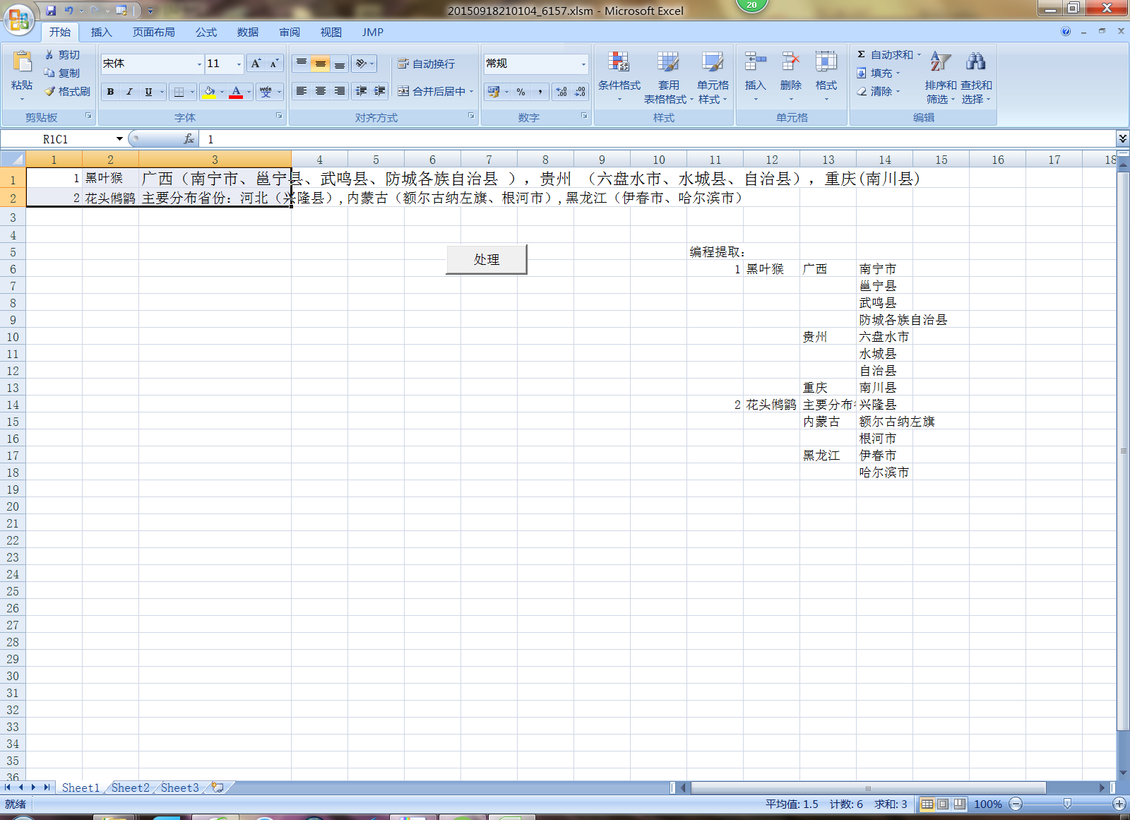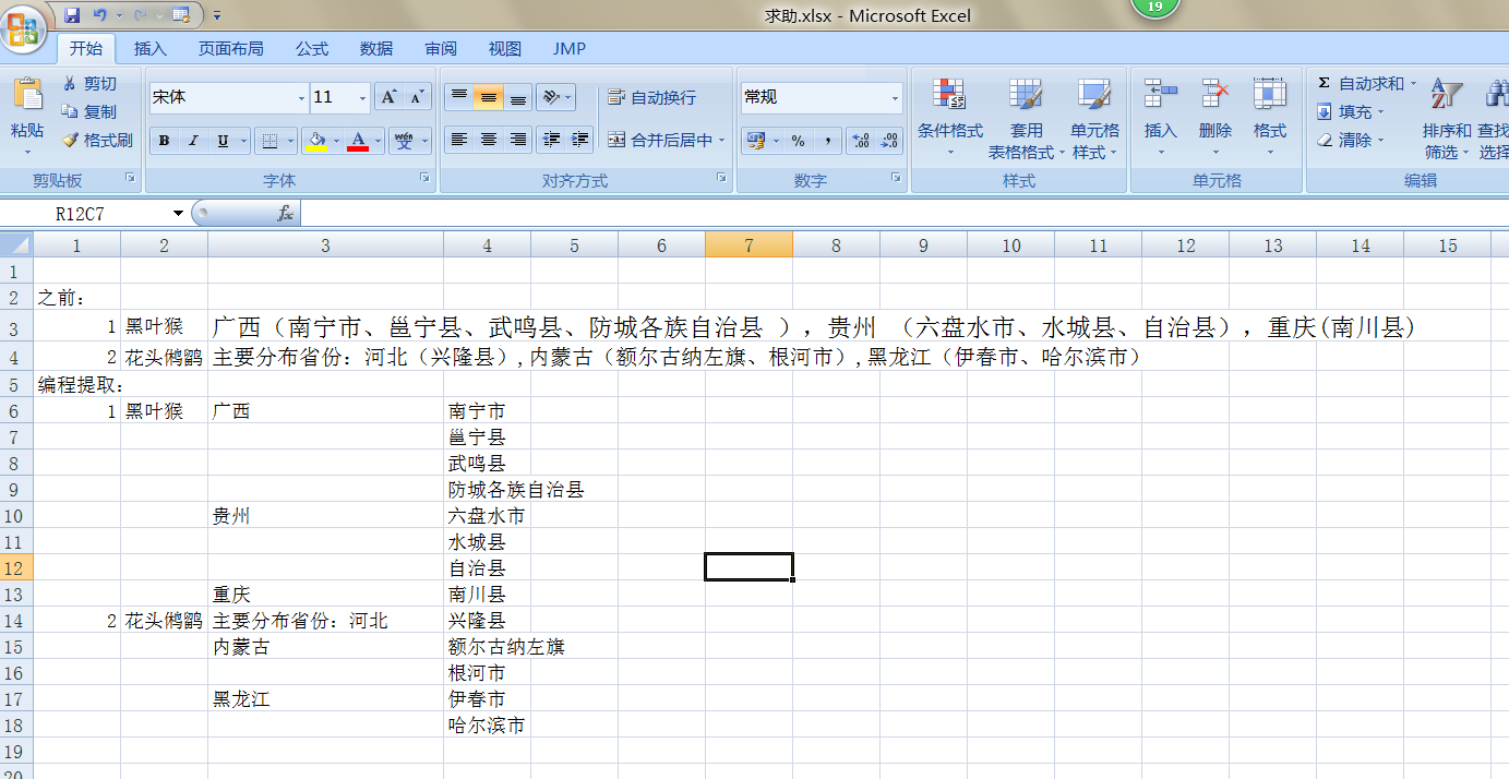 想通过VBA程序提取单元格内的内容并把它们分开储存。涉及到查询关键字和循环语句。具体请看图片,多谢各位啦!