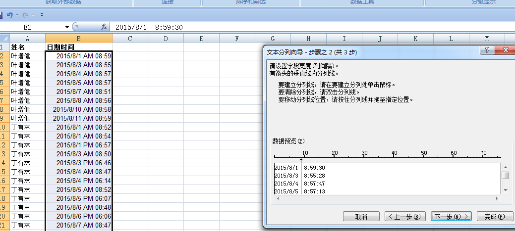 我分列出来后的时间是二十四小时制,我要让他变为十二小时制,同时让十二小时制中的AM或PM 和时间不在同一单元格显示。如图