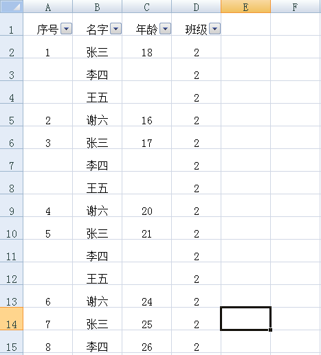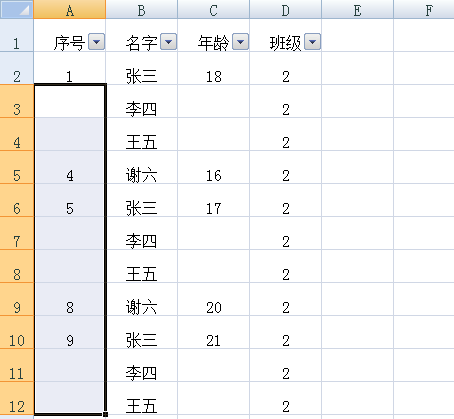需要做成这样,把年龄为非空的行对应的序号依次给编号,年龄为空的对应的序号也为空,且不能改变原标所有行的位置,特求一函数。需要做成的效果如下图