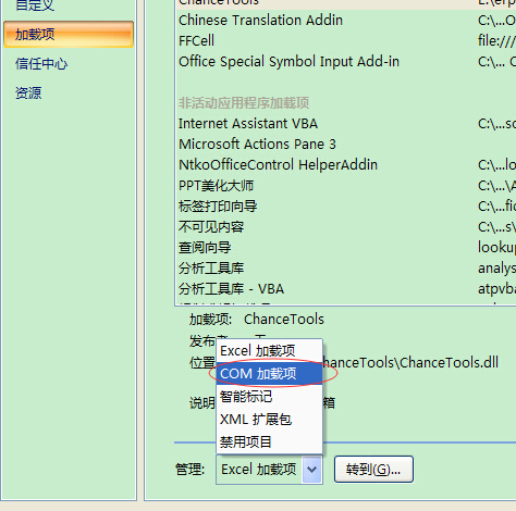 弹出那个错误,点确定后excel就关闭了,再启动excel也不再加载插件,加载项里显示禁用。启用后还是恢复上述问题