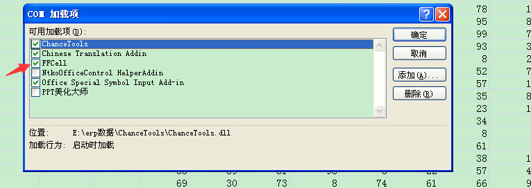 先按上面的步骤,把FFCELL打钩,然后关掉excel,重新打开excel,看下情况如何