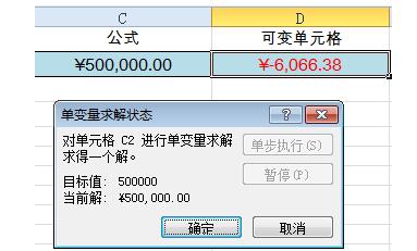 单击【确定】按钮,在单变量求解状态对话框中,就可以看到结果了:
