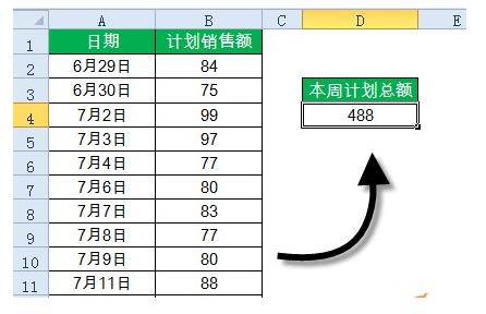 如下图所示,假如需要计算当前周的销售计划总额,该怎么计算呢?