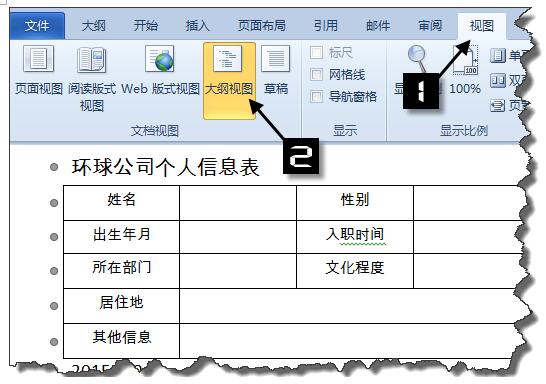 单击【视图】选项卡,选择【大纲】视图。
