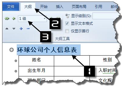 选中文档标题,点击【大纲】选项卡,设置大纲级别为【1级】。