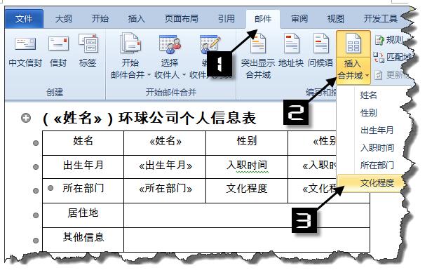 如何利用邮件合并,每人一份信息表