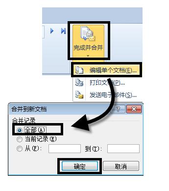 再单击【完成并合并】→【编辑单个文档】
