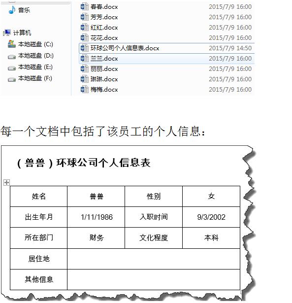 这里生成的Word个人信息表,需要将每个人的信息表单独保存成一个Word文档,比如:张三信息表.docx、李四信息表.docx等等。