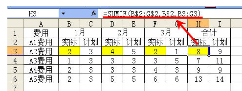 提示;SUMIF函数不只是左右示和,还可以上下求和。