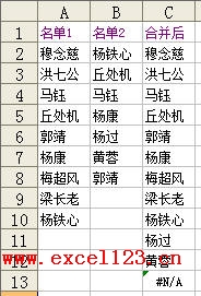 如果Excel工作表中的两列名单中包含一些相同的内容,现在要将这两列名单合并,删除其中的重复项,可以用多种方法来实现。例如可以先将这两列内容复制到一列中,然后进行高级筛选,去掉重复值。下面是一种用数组公式直接从这两列中提取唯一值的方法。假如两列名单分别在A2:A10和B2:B8区域中。
