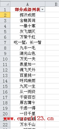 提取A列中最后一字为“一”的成语,用RIGHT函数: