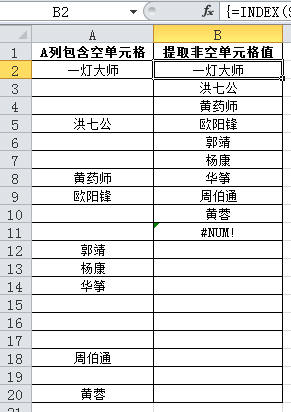 用数组公式从一列中提取非空单元格值