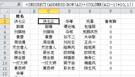 =INDIRECT(ADDRESS(ROW(D10)+(COLUMN(D10)-COLUMN($D$10))*10,COLUMN($D10)))我的个性签名