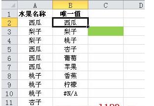 公式输入完毕后按Ctrl+Shift+Enter结束,然后拖动填充柄向下填充公式,直到出现“#N/A“为止,这样就将A列中的唯一值提取到B列。