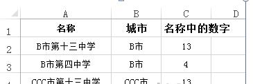 说明:首先用MID函数提取学校名称中的中文小写数字,然后用“TEXT(ROW(A$1:A$100),"[dbnum1]")”得到数组“{"一";"二";"三";"四";"五";"六";……"一百"}”,由于本例“十”至“十九”之间的数字在数组中显示为“一十”、“一十一”……“一十九”,故用SUBSTITUTE函数将“一十”替换为“十”。之后用MATCH函数查找中文小写数字的位置,即得到对应的阿拉伯数字。然后以B列“城市”为主要关键字,以C列“名称中的数字”为次要关键字进行排序即可得到所需的结果。