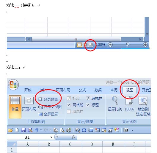 EXCEL2007的打印预览切换方式: