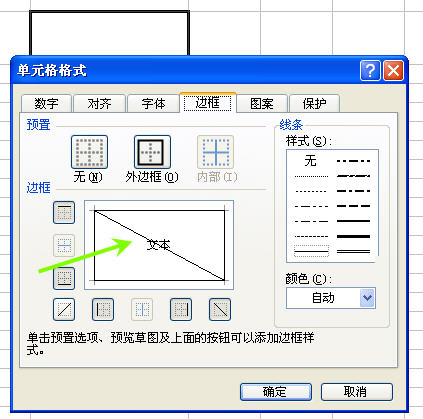 答:在excel表格中画斜线,如果只是一对角线,可以用格式的线来完成。方法是: