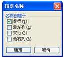单击菜单“插入”→“名称”→“指定”(或按<CTRL+SHIFT+F3>组合键),在“指定名称”对话框中,勾选“首行”复选框,如图77-3所示。单击“确定”按钮。