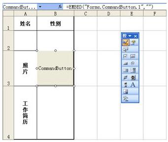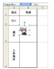 图83-9 图像在命令按钮中显示为了让相片的大小与单元格大小相匹配,可以调整命令按钮的大小,方法同步骤2。调整大小后的显示效果如图83-10所示。