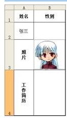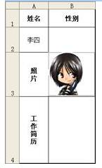 单击B1,然后单击菜单“插入”→“图片”→“来自文件”,在“插入图片”对话框中选择相应的相片文件,单击“插入”。