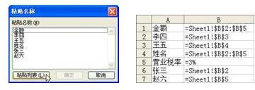 图85-1 “粘贴名称”对话框 图85-2 名称表格