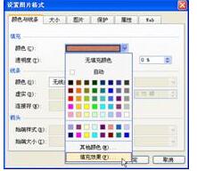 图76-4 设置链接图片的格式在“设置图片格式”对话框中选择“颜色与线条”选项卡,单击“填充”→“颜色”选项的下拉箭头,选择“填充效果”,如图76-5所示。