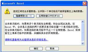 通常情况下,如果把几个含有数据的单元格进行合并,Excel会提示“在合并单元格时,如果选择的单元格中不止一个含有数据,Excel 将保留左上角单元格中的数据,并删除其余的所有数据。”如图72-1所示。