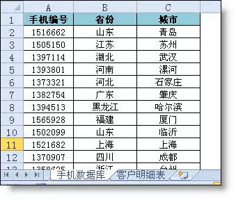 二、从手机号码中提取归属地从手机号码中提取归属地,同样也需要手机号归属地的数据表。(文件附下载地址),如下图所示。