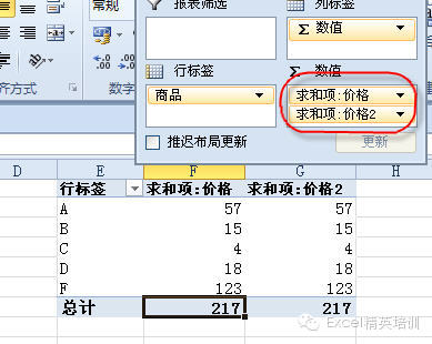 1 商品名称放在行标签里