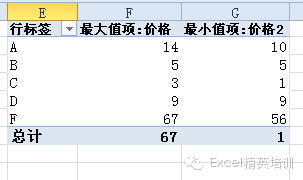 分析:遇到这样的问题,估计很多同学都是用函数解决的,先取得商品名称列表,然后再用数组公式计算出最高价和最低价。其实借助数据透视表,我们可以很轻松的解决这个问题。-------------------------------