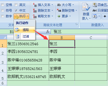 如果要提取电话号码,就勾选“数字”,然后点击提取,就可以了。