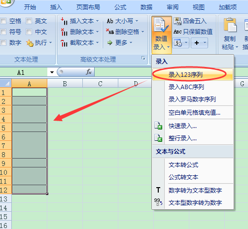 依次点开“方方格子“ 》 ”数值录入“ 》 ”录入123序列“ 即可,结果就出来了;