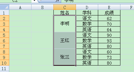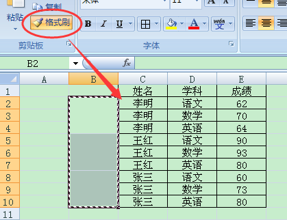 选定B2:B10,格式刷,对C2:C10进行格式刷操作,就实现了;