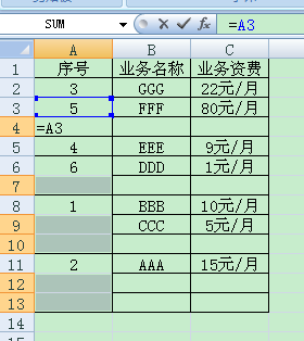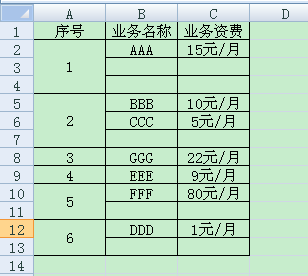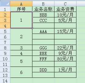 第3步:按数值升序排序后,要将相同单元格进行合并回来,(上一篇我们讲过了如何批量合并相同单元格http://ffcell.com/TopicSlt/ShowTopic.aspx?id=644),