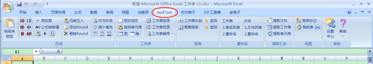 软件安装后提供超过30个功能:清除非数字、生成对方科目、尾差报告、添加Round、提取工作表、提取单元格等。