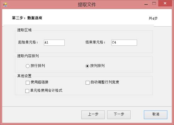 最后一步,设置我们要在选择的工作表中提取的区域,输入提取的“起始单元格”和“结束单元格”,这样就划定了我们要提取的区域,提取的结果会汇总到一张新建的工作表中,但是由于提取的是若干公司的报表相同指定区域,因此要如何排列提取的内容在新的工作表中,需要勾选“按列排列”“按行排列”,前者量每一个提取的内容按列向右排开,后者将每一个提取的区域按行向下罗列。最后“其他设置”,勾选“使用超链接”将在汇总表中提取到的区域与源文件建立超链接自动更新,“自动调整行列宽度”可以对提取的内容自动调整行列款,以免显示格式过窄,勾选“单元格使用会计格式”将现实的提取数字更加规范。