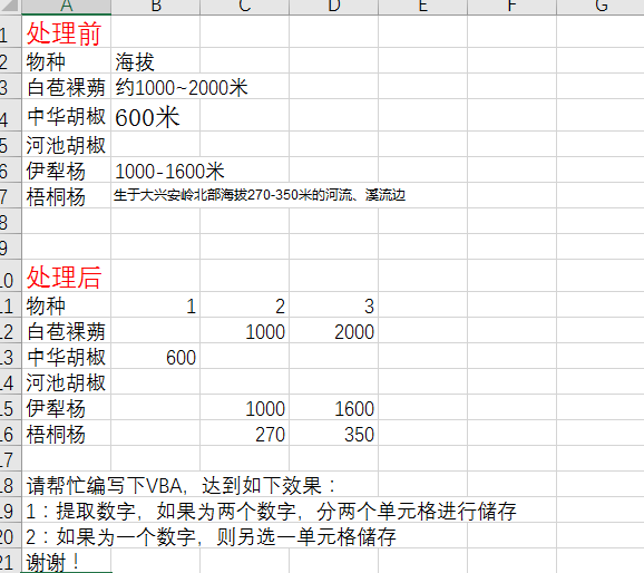 想要对单元格内数字进行提取并重新存储,请帮忙编写下程序,谢谢!