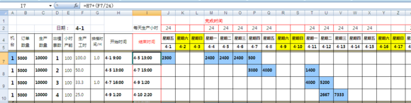 完成时间每行,每天生产数量相加要和每行前面的生产数量一样。